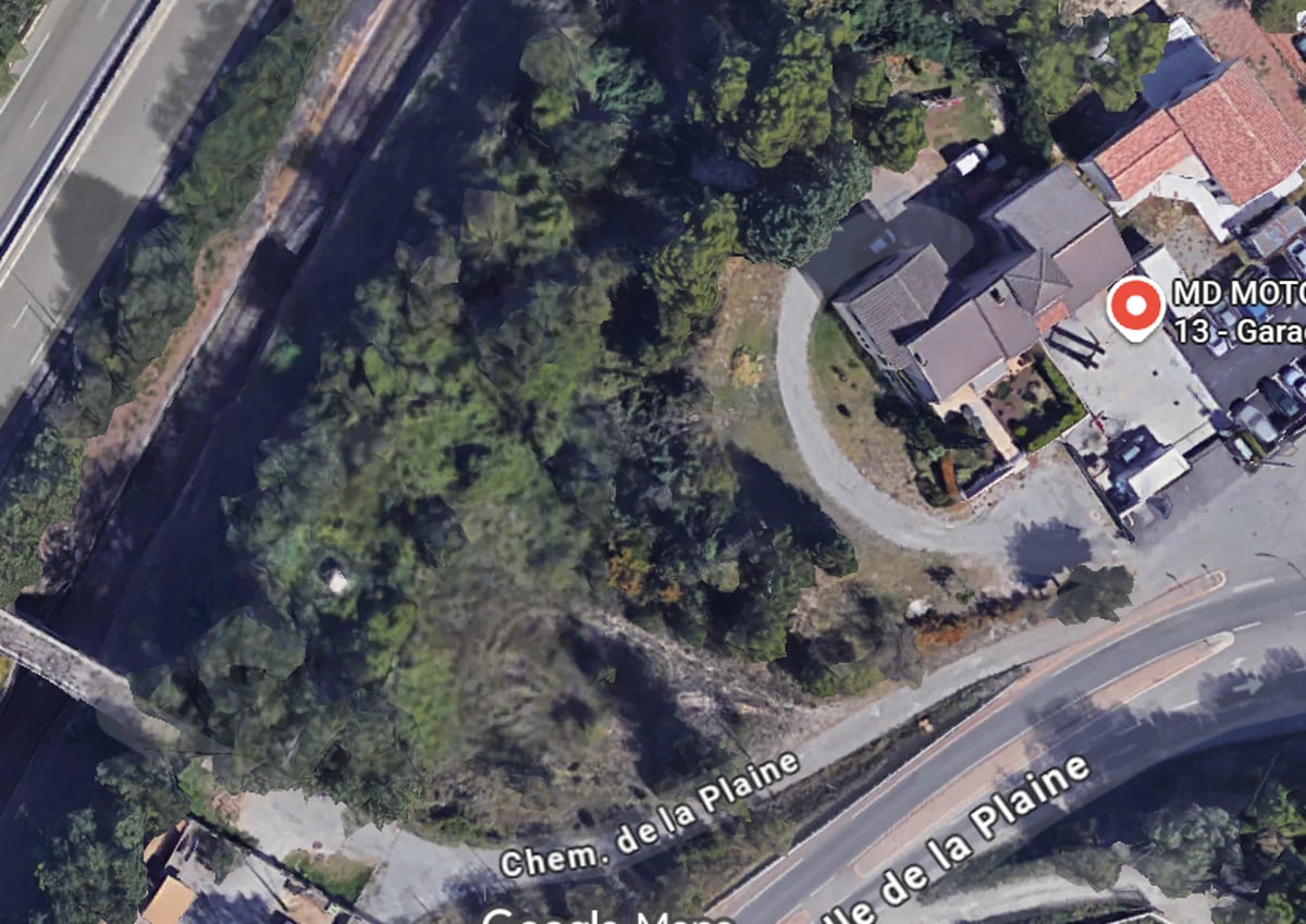 Parcelle non bâtie sur la commune de Gardanne arborée et enherbée laissée à l’abandon.