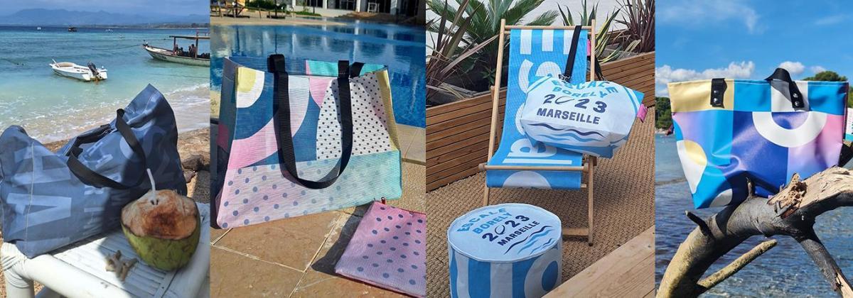 Chaque création est une pièce unique. Pour redonner une seconde vie à ses toiles géantes et créer des accessoires écolos exclusifs, la collectivité a fait le choix de s’adresser à un Etablissement de Service d’Aide par le Travail (ESAT) via une procédure de marché réservé. Ces pièces uniques sont ainsi fabriquées par les personnes en situation de handicap de l’ESAT Saint-Jean situé dans le 10e arrondissement de Marseille, pour une production solidaire et locale à la fois.